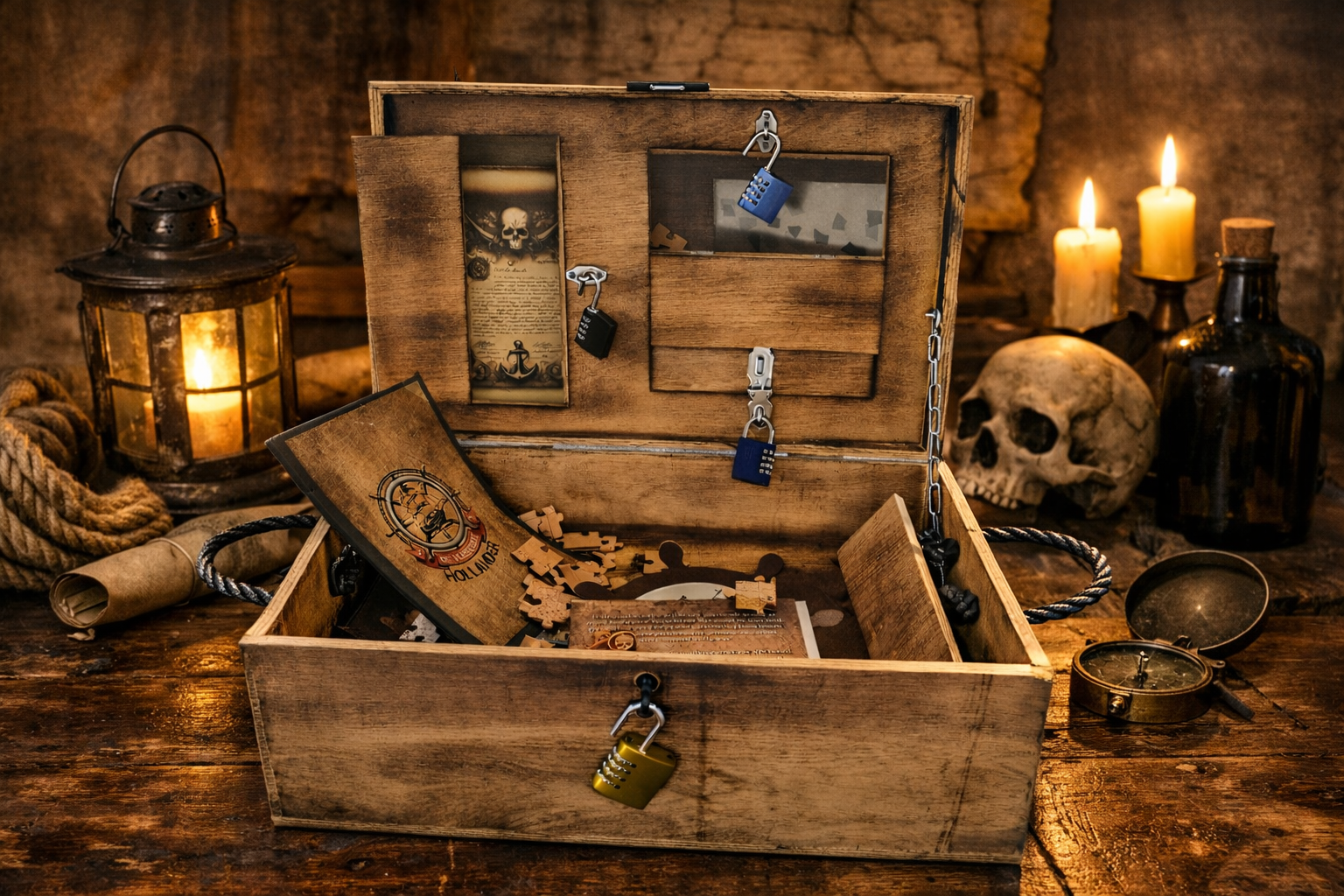 π΄ββ οΈ Escape Dinner β De Vloek van de Vliegende Hollander π Bij Smit Giethoorn π Starttijd: 17:00 uur πΆ β¬49,50 p.p. (Escape Box + 3-gangen diner) Ben je op zoek naar een origineel en spannend avondje uit? Beleef dit unieke Escape Dinner arrangement bij Smit Giethoorn, waar mysterie, teamwork en heerlijk eten samenkomen. Jullie starten de avond met een warm welkom en kiezen eerst jullie menu. Daarna begint het avontuur: om het diner vrij te spelen, moeten jullie samen de mysterieuze Escape Box kraken. Door goed samen te werken, raadsels op te lossen en geheimen te ontrafelen, verdienen jullie het diner. Is het mysterie ontrafeld? Dan genieten jullie van een complete avond met voorgerecht, hoofdgerecht en nagerecht. Willen jullie later starten? Geen probleem β dan kan de escape box ook na het diner gespeeld worden. π Het verhaal: Jarenlang zwerft hij met zijn spookschip De Vliegende Hollander over de woeste zeeΓ«nβ¦ Op zoek naar de vervloekte kist waarin zijn pact met de duivel verborgen ligt. Een kist vol symbolen, puzzels en duistere magie. En nuβ¦ is die kist opgedoken. Bij jullie. Zijn jullie dapper genoeg om het mysterie te ontrafelen en de kapitein te bevrijden? Of worden jullie zelf onderdeel van de vloek? Los uitdagende raadsels op. Ontgrendel verborgen geheimen. Bevrijd de kapiteinβ¦ of word zelf vervloekt. βΉοΈ Praktische informatie. πΆ Arrangementprijs: β¬49,50 p.p. (Escape Box + 3-gangen diner). π₯ Per escapebox: 2 t/m 6 personen. β Ideaal voor kleine gezelschappen en vriendengroepen. π₯ Groepen groter dan 12 personen? β Neem contact op met de locatie. π· Optioneel bij te boeken: Drankarrangement 4 uur β β¬32,50 p.p. β° Te boeken tot 24 uur vooraf. π Beschikbaar op donderdag, vrijdag, zaterdag en zondag. ποΈ Te boeken t/m 31 maart 2026. π Locatie: Smit Giethoorn
